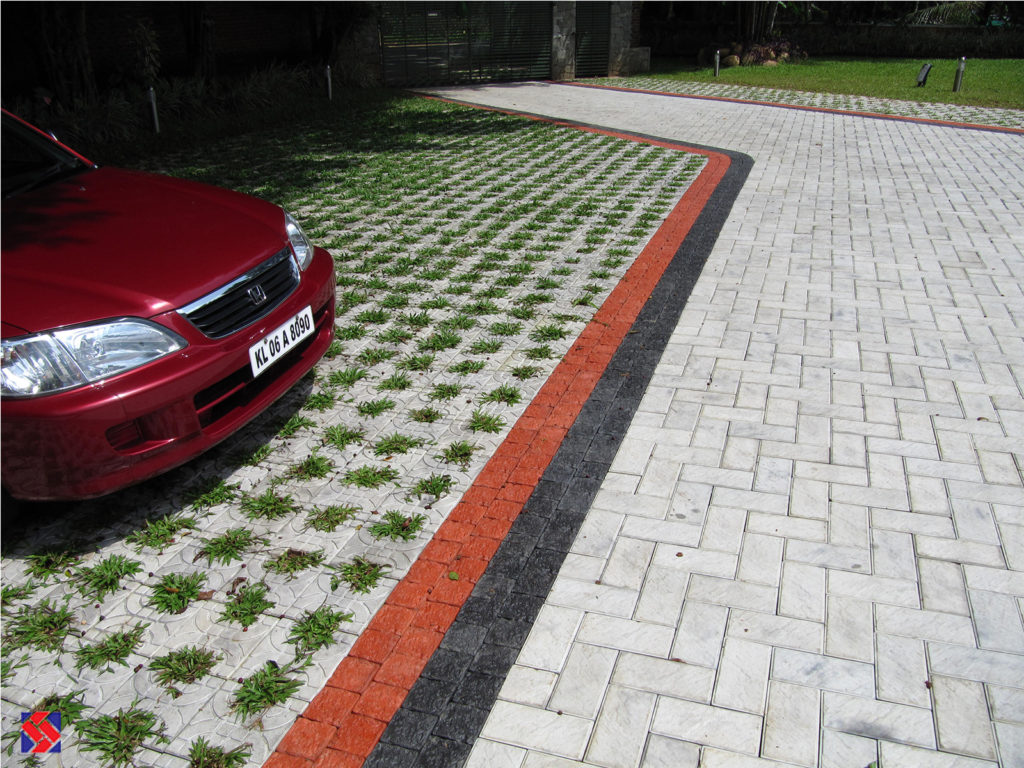 Romanstone does a great job in complementing other paver blocks in creating beautiful borders for the larger paved area.