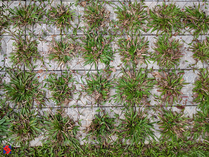 In the center, you plant grass along with red soil. After 3 days, the soil is pushed naturally to the bottom of the paver. You'll need to add a small amount of soil to the center of the paver again to complete the procedure.